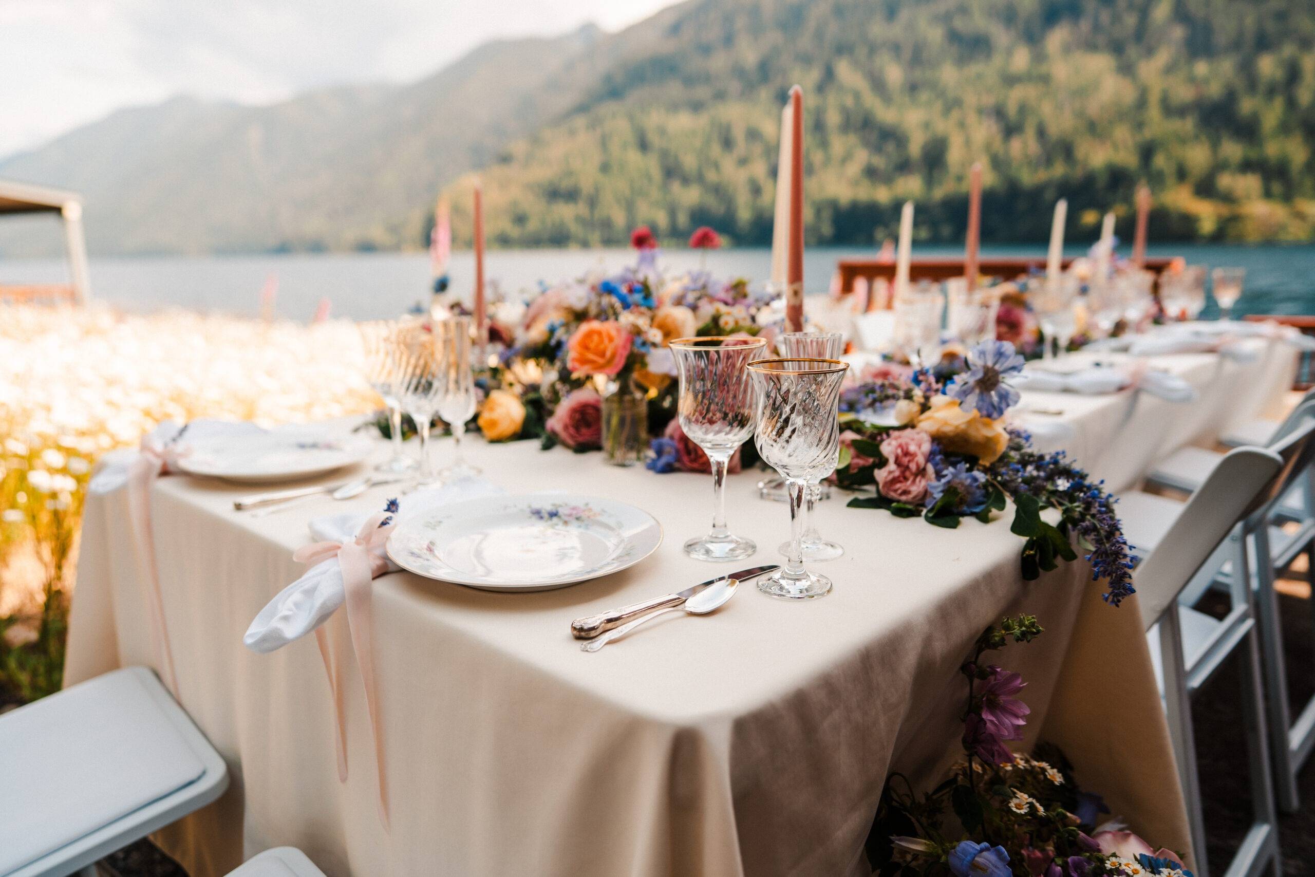 Most of my items are sourced from thrift stores and antique stores, and I rent and reuse everything (even the little pieces of ribbon and twine from my most popular napkin design!) so you can have a beautiful event that creates priceless memories instead of tons of waste. Behind the scenes, I use zero waste cleaning products from Blueland so there are no plastic bottles or microplastics harming the environment due to all the linens and dishes I wash.