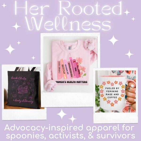 Hi, I’m Jenna, the owner of Her Rooted Wellness. I started my small business out of both lived experience and a deep commitment to women’s health and empowerment. I’m a nurse practitioner and Certified Functional Hormone Specialist, and I launched my shop after years of working with patients and growing frustrated with how often women are dismissed, gaslit, or ignored when it comes to their health. Like so many others, I’ve felt the sting of being brushed aside, and I’ve watched as conditions that mainly affect women- like PMDD, EDS, lipedema, PCOS, and endometriosis- are minimized or left undiagnosed for years. It’s isolating, and it leaves women feeling invisible. I wanted to change that by creating fun, advocacy-driven apparel that sparks organic conversations and brings visibility to what too often remains hidden. Some of my favorite messages are from customers who tell me they met someone “out in the wild” who recognized their shirt, shared the same struggles, and in that moment they knew they weren’t alone. That sense of community is everything.