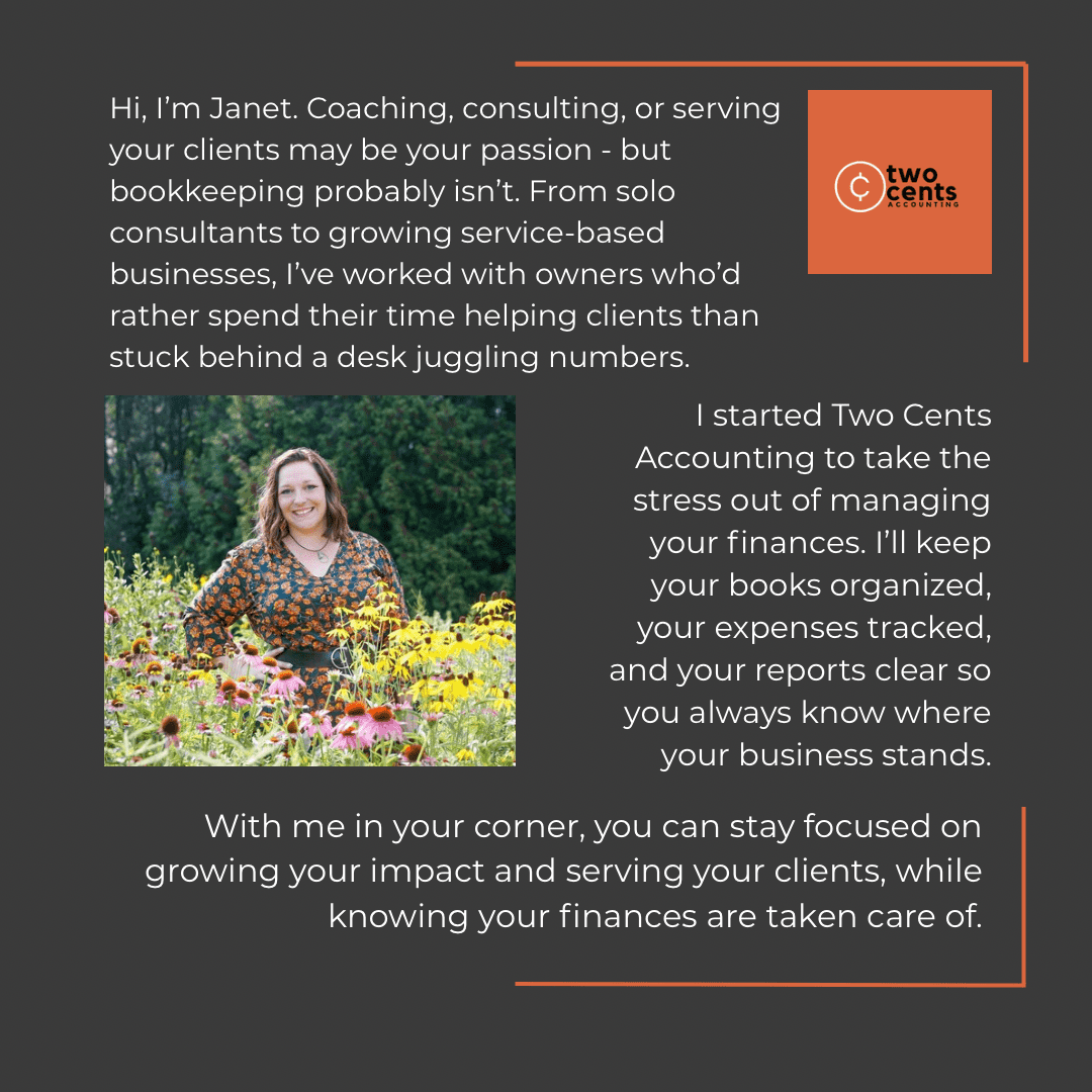 Two Cents Accounting grew from a simple truth: small business owners deserve better than chaos in their books. After years of seeing entrepreneurs stay up late with spreadsheets and stress over tax time, founder Janet Cram decided to build something different – a bookkeeping practice that replaces confusion with clarity and overwhelm with confidence.