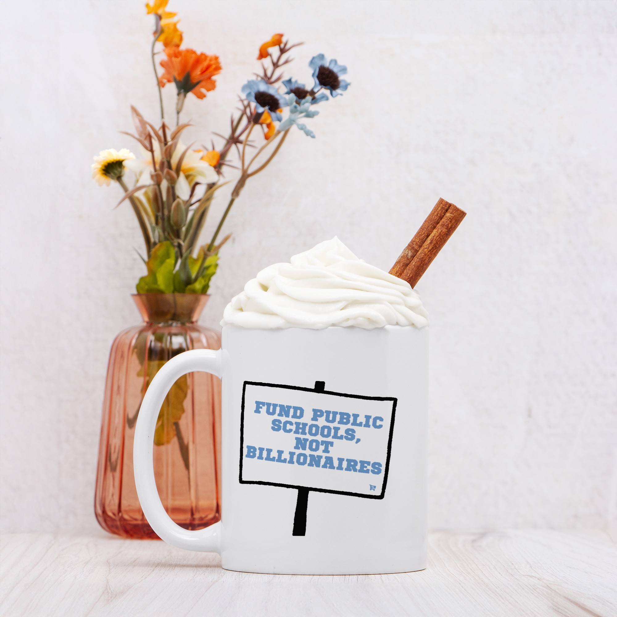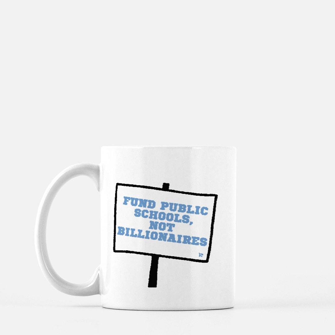 Sip your coffee while making a statement—this Fund Public Schools Mug puts your priorities front and center. A daily reminder that kids deserve investment, not billionaires. Whether you’re sipping your morning coffee, tea, or a well-earned glass of wine (we don’t judge), this dishwasher- and microwave-safe mug is ready for daily use.