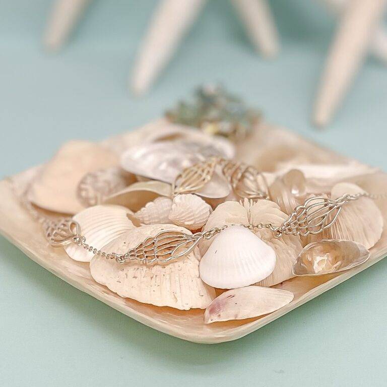 Wave Bracelet – The bestselling original design, a simple wave motif with a hinged opening. It’s become a signature for the beach and back and a symbol of coastal style.